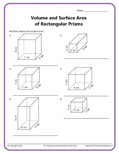 10) the length, width and height of the wooden box are 12.3 inches, 6.4 inches and 7.5 inches respectively. Web this worksheet will help students understand the concept of surface area, rectangular prism, and the surface of a rectangular prism. Web below are six versions of our grade 6 math worksheet on finding the volume and surface areas of rectangular prisms.