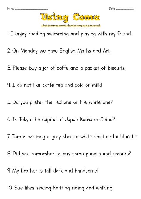 Using comma's for grade 1 (sa). Add commas as needed in the sentences below. With these reading and writing worksheets, your students will learn how commas act differently in a series, in dates and addresses, in.